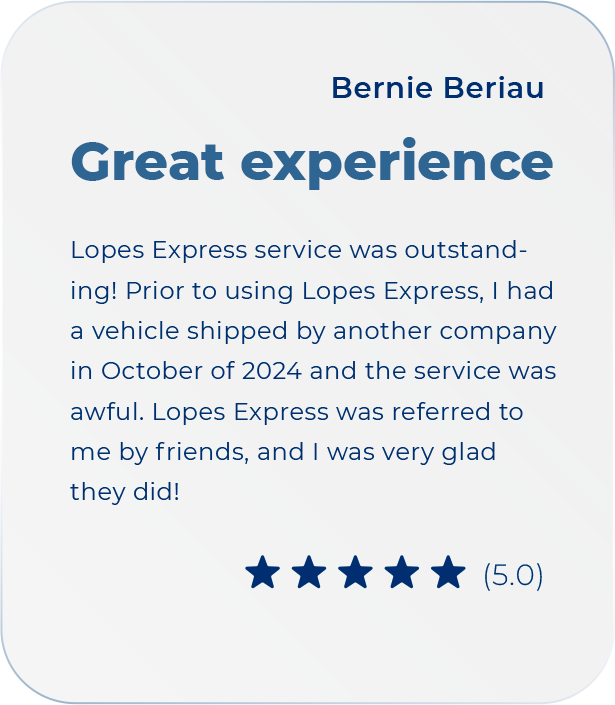 Since 2011, Lopes Express Shipping has specialized in vehicle transportation between Florida’s East/West Coasts and New England.